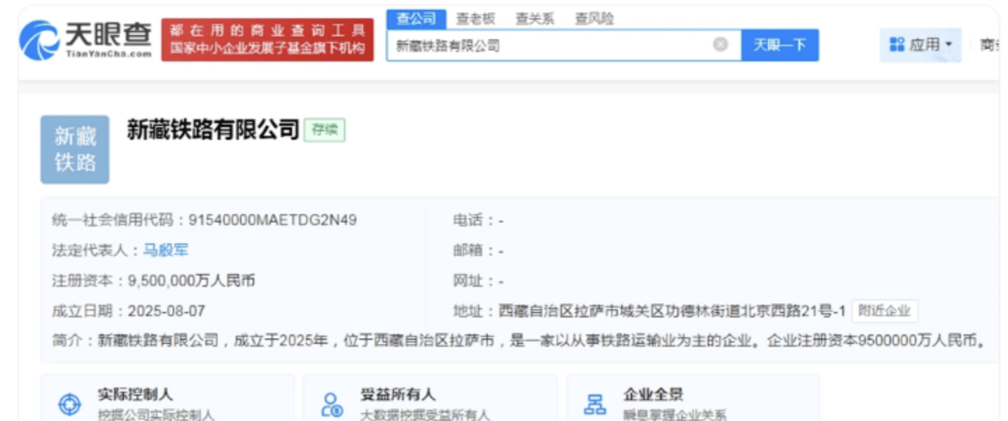 注册本钱950亿人平易近币,涉及铁、公、桥梁等多个范畴的扶植和运营。线北起新疆维吾尔自治区和地步区藏桂坐,该公司由中国国度铁集团无限公司全资持股。新藏铁包罗日和铁和拉日铁,股东消息显示,是规划中的毗连新疆维吾尔自治区和地步区和自治区拉萨市的铁线,